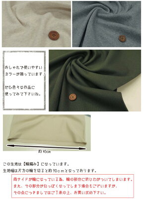 【品質:綿95% ポリウレタン5%】 【生地巾:約90cm(45cm輪編み)】 【生地の厚さ:約1.0mm】 【日本製】 【ボタンの大きさは2cmです】 【商用利用可】 生地の特性上、輪の部分に折りじわがついており、 白っぽくなっている場合がございます。