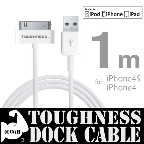 アップル認証 Dockケーブル 1m 断線に強いタフネスケーブル(R) iPhone4s iPhone4 充電ケーブル データ通信(iTunesとの同期)充電兼用 iPhone用ケーブル 1m ネコポス送料無料